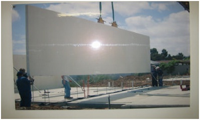 Panels are vertically loaded at the factory on stillages for transport to the construction sites on trucks. Each stillage holds 5 or 8 pre-cut panels. The stillages are placed at the construction site close to the foundation for erection using vehicle mounted crane or other type of crane with required boom length for construction of low, medium and high rise buildings. Special lifting jaws suitable to lift the pane l are used by inserting into the cavities and pierced into webs, so that lifting/handling of panels will be safe.