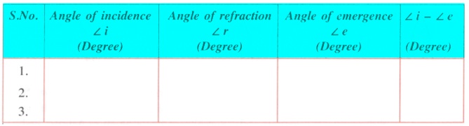 11. Measure the angle of incidence i.e angle of refraction, angle of emergence, again.
