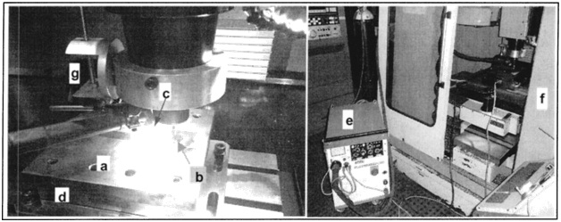 Machine setup is a three axis conventional machining center equipped with a spindle with rotational speed below 10,000 rpm and maximum linear feed of 5 m/min.The NC unit controls the machining tool paths and the basic operation of the plasma power generator, using specially programmed miscellaneous M type functions. Thus the pilot and the transferred arcs can be switched on/off. The following figure shows the machine setup of PAM process.