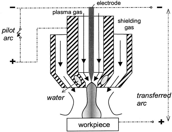 The temperature of the ionized gas Argon is well over 15,000 K. The velocity of the plasma jet about 5 mm away from nozzle is 400 m/s and at this is the speed at which the plasma jet impacts on the material surface. The energy is transferred by convection to the work piece and produces the heating of the work surface at temperatures ranging from 400 to 1,000°C. The heating of the work piece depends primarily on two operating parameters one is the intensity of the transferred arc I and the translational velocity of torch over the work surface in case of milling because of the location of the nozzle fixed with respect to the milling tool. The velocity is equal to the machine-tool linear feed F .
