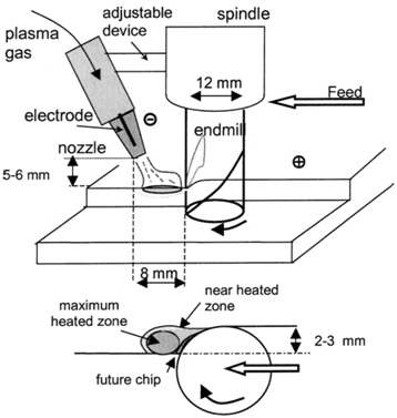 Plasma assisted milling is recommended for the machining of low-machinability alloys, and especially those whose mechanical properties decrease only over a certain temperature. In these materials a high mechanical strength is related to high shear strength and therefore machining is difficult. The Ni-base and Co-base alloys are considered to be amongst the materials with lowest machinability. This low machinability depends mainly on the following factors: