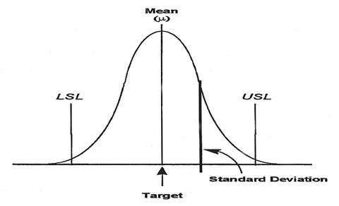 Its can also be defined as a measure in “Standard Deviation Units (Z)” of how far the process mean is from the performance standard. How far (in standard deviation units) is the mean from the specification (Lines A+B)