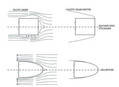 For a start the body has to be cruising very fast at least 180km/hr, which is far faster than ordinary torpedoes. The nose rather than being streamlined should be flat. Thus at high speeds water is forced to flow off the edge of the nose at such an angle that it cannot wrap around the surface of the body. As it passes over the edge it vaporizes due to high velocity. Thus a big cavity is formed which encloses the front part of the object.