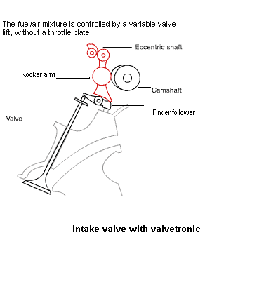 In engines without valvetronic technology fuel injection systems monitor the volume of air passing through the throttle butterfly and determine the corresponding amount of fuel required by the engine. The larger the throttle butterfly opening, the more air enters the combustion chamber.