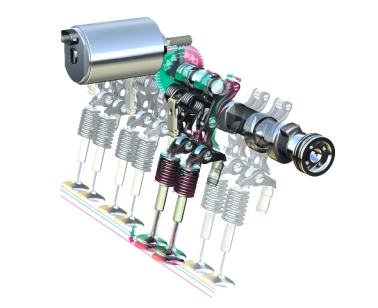 Compared with conventional twin-cam engines with finger followers, Valvetronic employs an additional eccentric shaft, an electric motor and several intermediate rocker arms, which in turn activates the opening and closing of valves. If the rocker arms push deeper, the intake valves will have a higher lift, and vice-versa. Thus, Valvetronic has the ability to get deep, long ventilation (large valve lift) and flat, short ventilation (short valve lift), depending on the demands placed on the engine