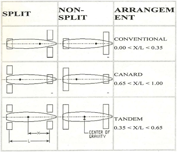 The basic choices in foil and strut arrangement are canard, conventional or tandem as shown in Figure 2. Generally ships are considered conventional or canard if 65°/o or more of the weight is supported on the front or the aft foil respectively. If the weight were distributed relatively evenly on the fore and aft foils, the configuration would be described as tandem.