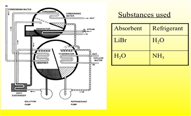 The absorption refrigerator is a refrigerator that uses a heat source (e.g., solar, kerosene-fueled flame) to provide the energy needed to drive the cooling system. Absorption refrigerators are a popular alternative to regular compressor refrigerators where electricity is unreliable, costly, or unavailable, where noise from the compressor is problematic, or where surplus heat is available (e.g., from turbine exhausts or industrial processes). Absorption refrigerators powered by heat from the combustion of liquefied petroleum gas are often used for food storage in recreational vehicles.