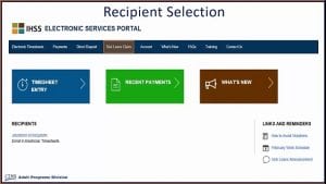 Using this online application, the provider will be able to enter the hours worked for the IHSS recipient and submit the timesheet electronically through the internet. If the IHSS recipient is also enrolled in the Electronic Timesheet system, the recipient may approve or reject a timesheet online as well.