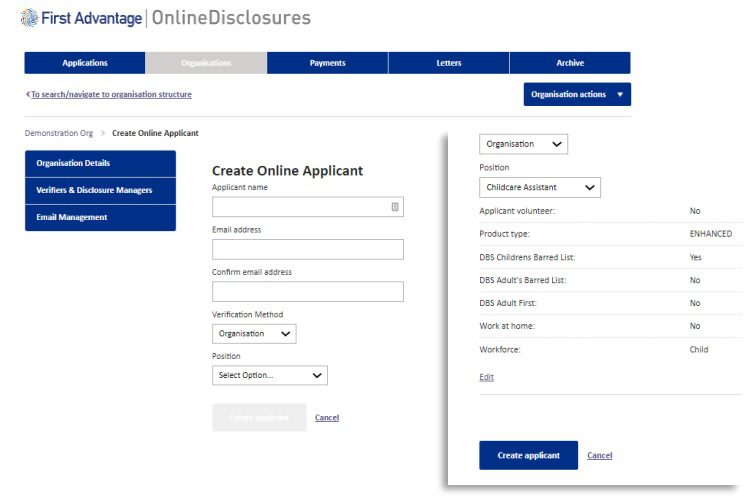 To add an applicant, ensure you are in the correct organisation branch (see above) and follow these steps: