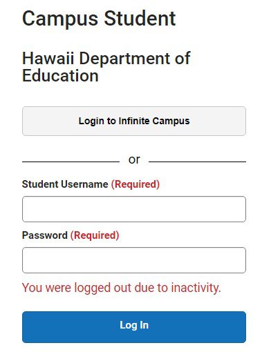 If you are a student in Hawaii and need help accessing the Infinite Campus Student Portal, please contact your school for assistance.
