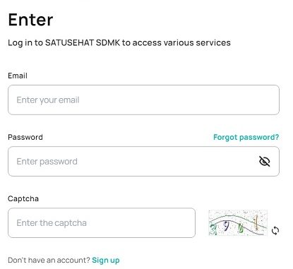 Enter your credentials: On the login page, you’ll find fields to enter your email address and password. Fill these in with the information you used when registering for SATUSEHAT SDMK.