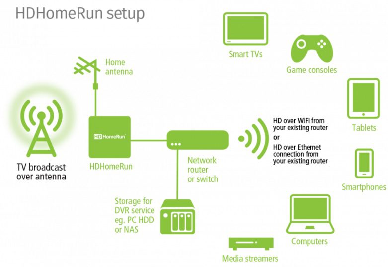 “The HDHomeRun works by providing live TV to your home computer network from over-the-air TV broadcasts using an antenna, or from a cable TV provider (US CableCARD only).”