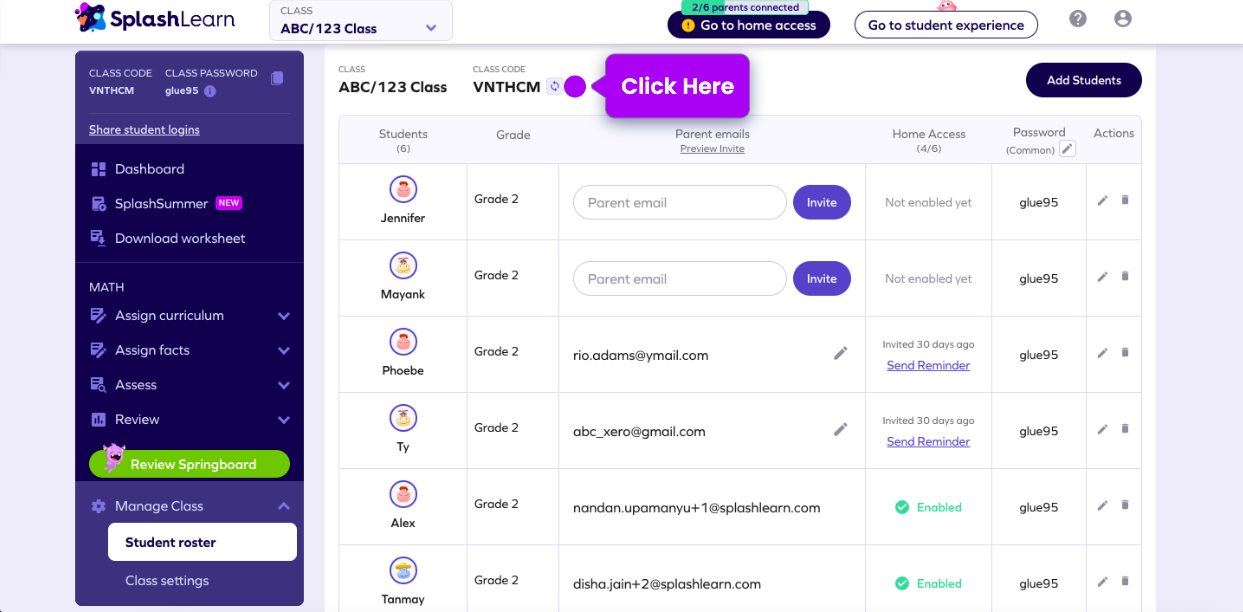 Changing the Class Code is a straightforward process within the SplashLearn platform. To generate a new Class Code for your classroom, follow these steps: