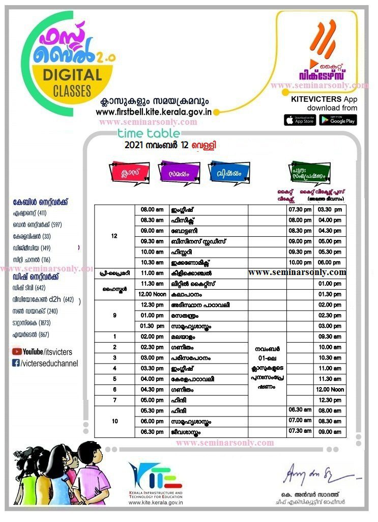 Below is the timetable for classes to be held on Friday 12th November, as part of the online education program conducted by the Department of Education under the name of FirstBell on Victor’s Channel. Classes start at 8:30 am.
