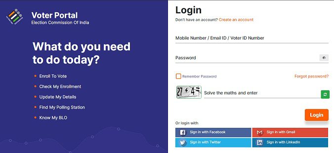 Ans: Register yourself on Voter’s Portal (https://voterportal.eci.gov.in) using email ID and need to follow the below steps: