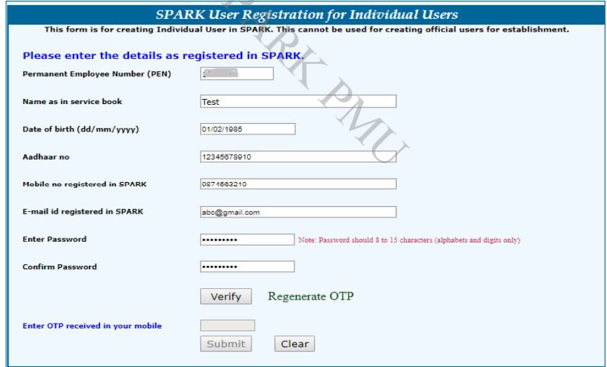 All regular employees are informed that those who don’t have any user credentials in SPARK can register online at www.spark.gov.in by themselves to get individual login in SPARK.