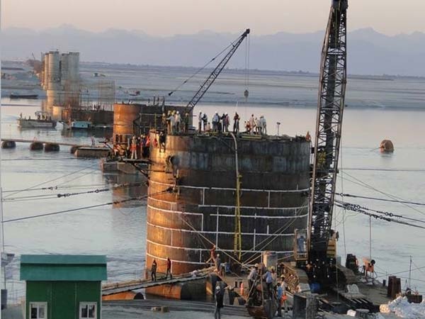 Bhartia Infra constructed the guide bunds and approach embankments on the south bank of the bridge. A joint venture of Hindustan Construction Company (HCC), Germany-based DSD Brouckenbau and VNR Infrastructures builds the superstructure of the bridge under an Rs9.87bn ($185m) contract awarded in November 2011.