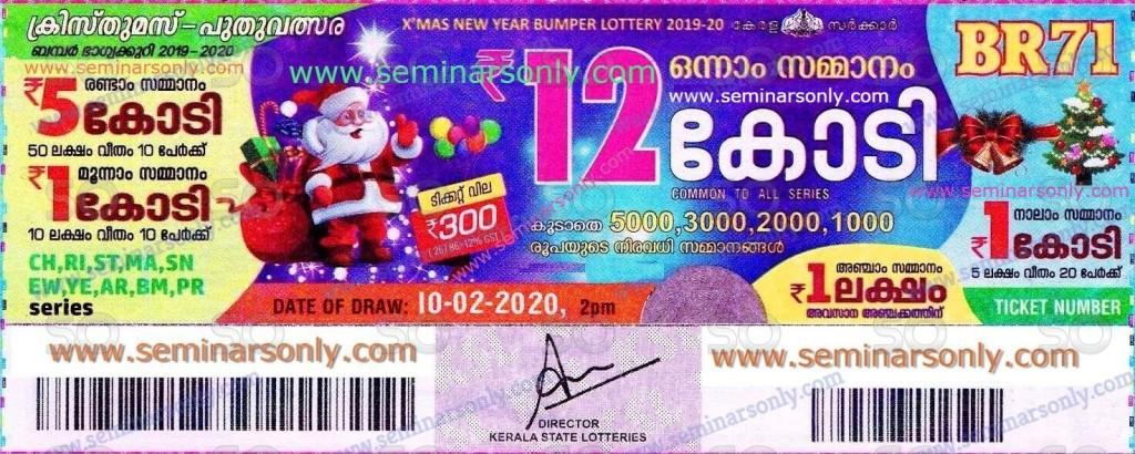 LIVE : 10.2.20 Christmas New Year Bumper 2019 2020 BR 71 Kerala Lottery Results,