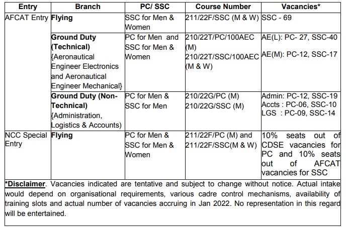 There is no intake planned for Meteorology and Education branches for AFCAT 01/2021 for course commencing in January 2022.