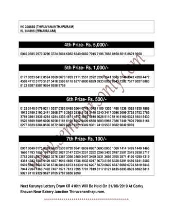 Next Karunya Lottery Draw KR-410 th Will Be Held On 31/08/2019 At Gorky Bhavan Near Bakery Junction Thiruvananthapuram.