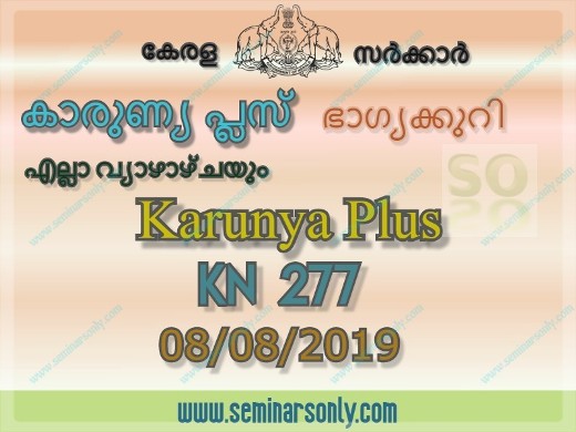 Karunya Plus Lottery No. KN 277 th Draw Held On 08/08/2019 at Gorky Bhavan near Bakery Junction Thiruvananthapuram