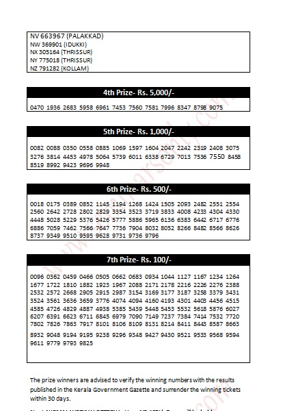 The prize winners are advised to verify the winning numbers with the results published in the Kerala Government